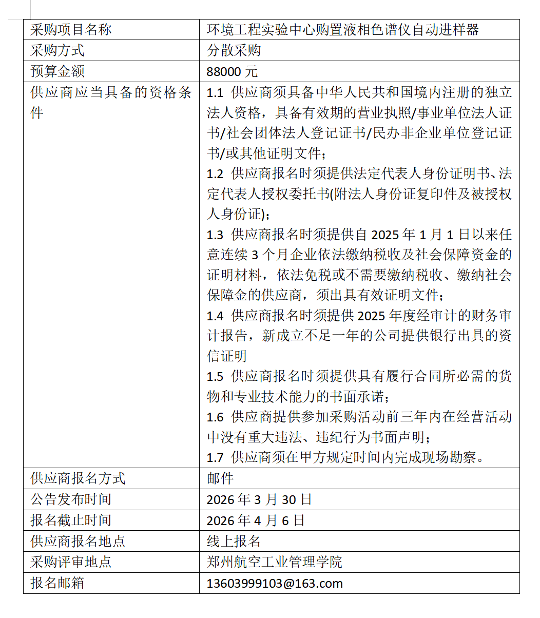 环境工程实验中心购置液相色谱仪自动进样器分散采购
