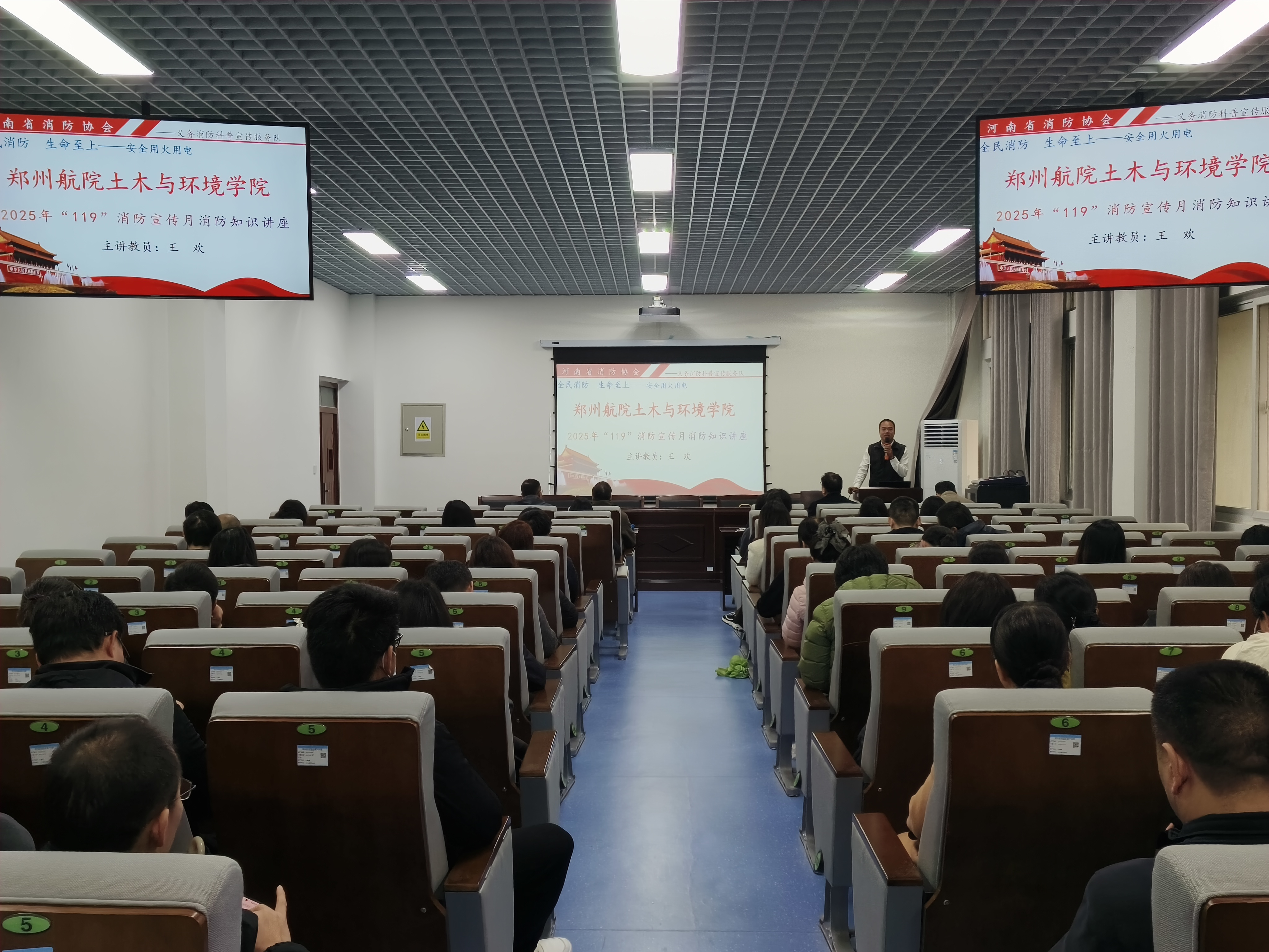 为全面增强师生安全意识,提升消防与实验室安全防范能力,11月6日下午,土木与环境学院在学院大会上组织开展了“消防知识讲座暨实验室安全培训会”。活动特邀河南省消防协会教员王欢来校宣讲,环境工程实验中心主任陶贺担任实验室安全培训会主讲,全院教师参加。