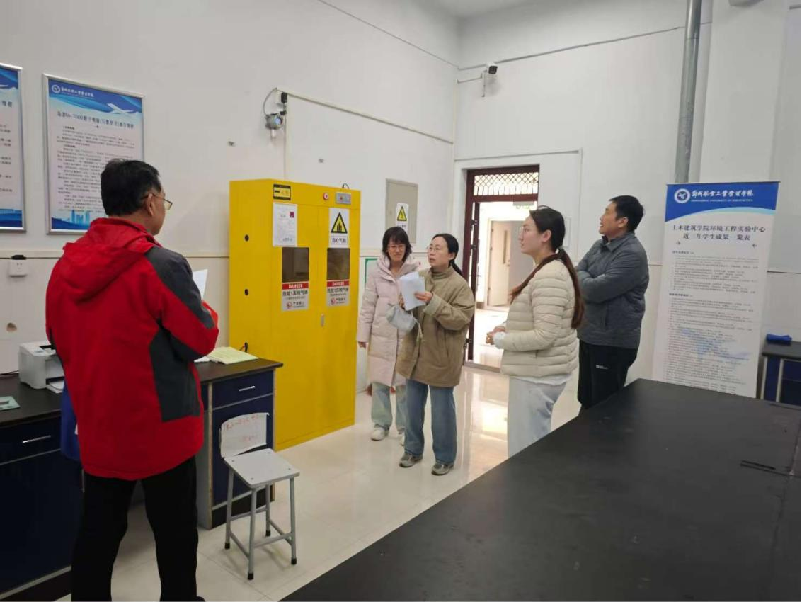 为压实实验室安全政治责任,筑牢校园安全防线,按照学校安全政治责任专项巡查工作统一部署,12月17日下午,学校实验室与设备管理处专项检查组莅临环境工程实验中心,开展实验室安全隐患整改 “回头看” 检查工作。本次检查聚焦前期安全巡查发现问题的整改落实情况,重点围绕化学品库、科研实验室安全、气瓶安全管理等关键风险点展开全面核查,确保隐患整改闭环、安全管理到位。